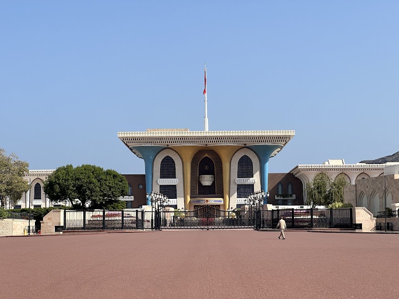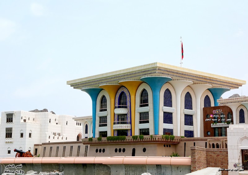 مَعلَم بارز ومكان إقامة احتفالي لسلطان عُمان يشتهر بواجهته ذات الأعمدة الزرقاء والذهبية الزاهية