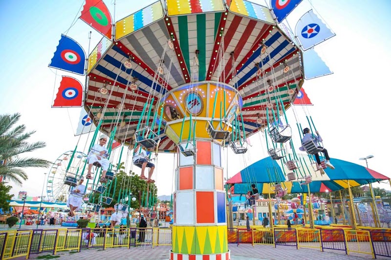 منتزه ترفيهي مناسب للعائلات يضم مطاعم وألعابًا وجولات، بما فيها الأفعوانيات
