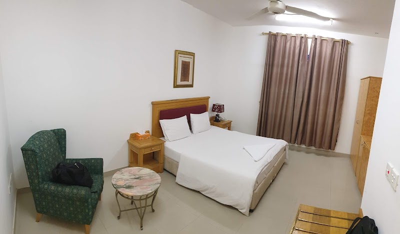 غرف وشقق مريحة في فندق متواضع فيه صالة مشتركة ومطعم نباتي